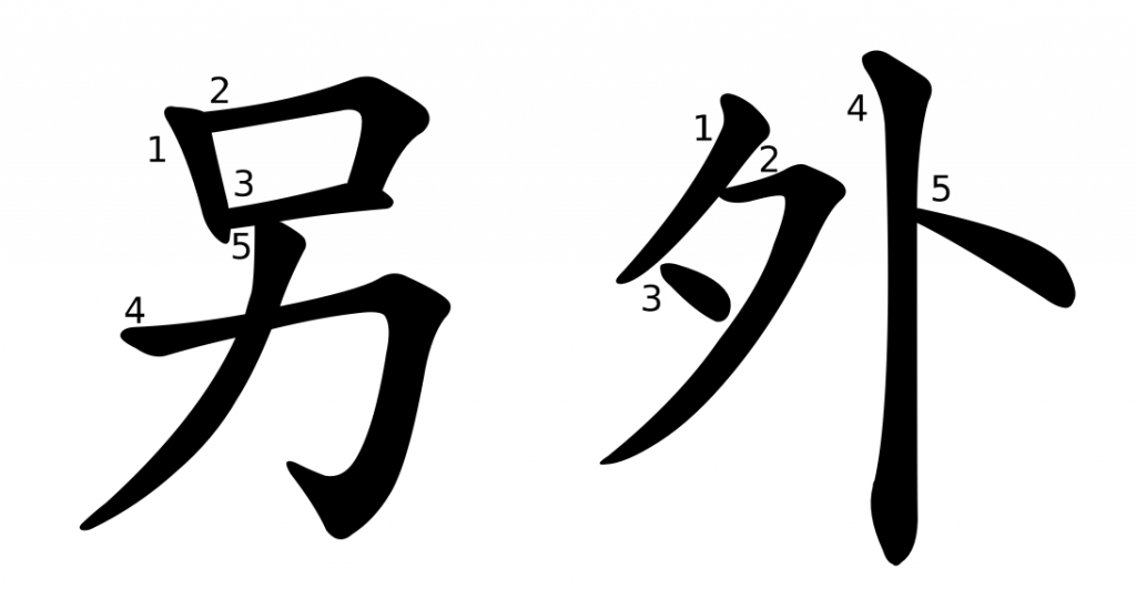 另外 [lìngwài] Conj. besides. 我喜歡打籃球,另外,我也喜歡書法和画画儿。/ 我喜欢打篮球,另外,我也喜欢书法和画画儿。I like playing basketball, and I also enjoy calligraphy and drawing.