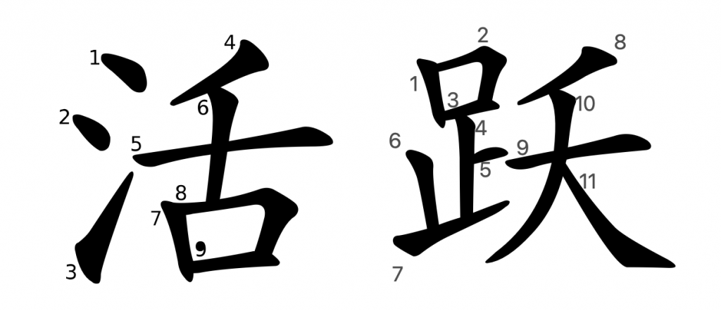 活躍/活跃 [huóyuè] Adj. active; lively. 派對上的氣氛很活躍/派对上的气氛很活跃。The atmosphere at the party is very lively.