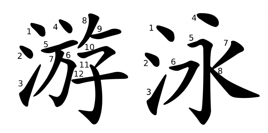 游泳 [yóuyǒng] V-O to swim. 我游泳游得不好。I’m not very good at swimming.