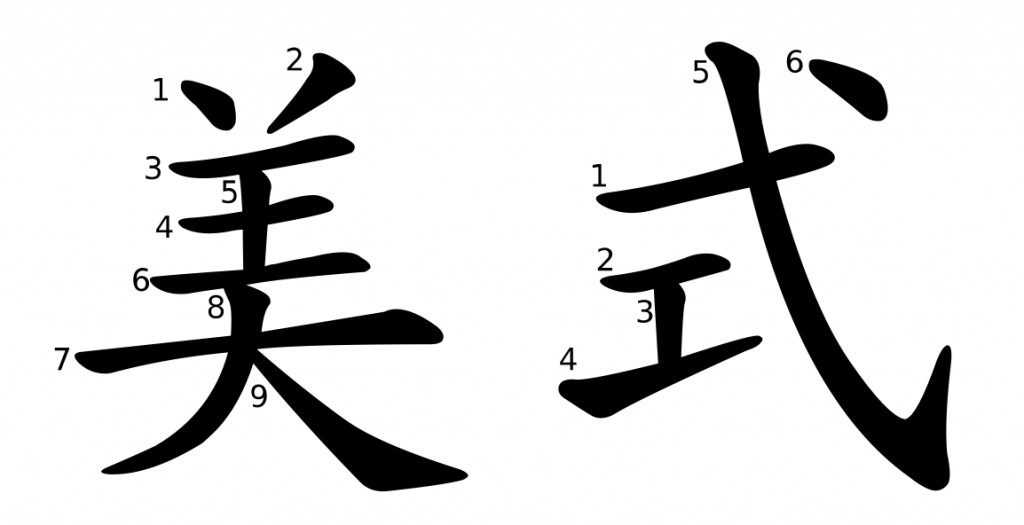美式 [měishì] N. American style. 我很喜歡看美式足球/我很喜欢看美式足球。I really enjoy watching American football.