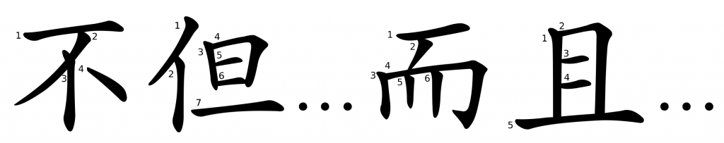 不但…而且… [búdàn…érqiě] Not only…,but also…. 我家不但有廁所,而且還有電影院。/ 我家不但有厕所,而且还有电影院。My house not only has a bathroom, but also a movie theater.