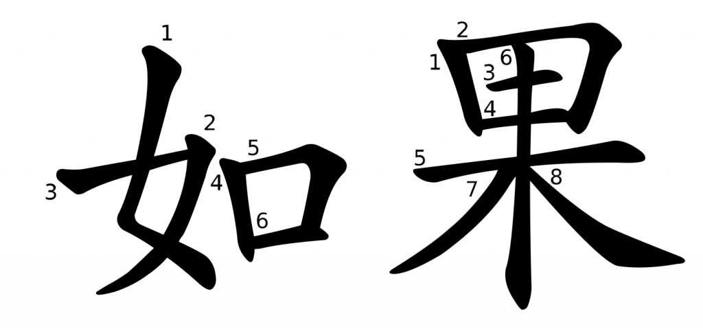 rú: In “rúguǒ” (if), “如” means “if” or “suppose”, expressing a hypothetical condition. Thus, “如果” literally means “if it were the case that …”.